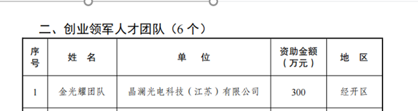 近日,从无锡市惠山区科技和人才工作领导小组人才工作办公室传来喜讯,会员金光耀创业领军团队的“光伏与微电子新材料的研发与制造项目”获得惠山区组织部、科技局及专家团队的一致好评,以总分第一名的成绩入选惠山区“先锋英才计划”创业领军人才团队,并获得资助资金300万元。