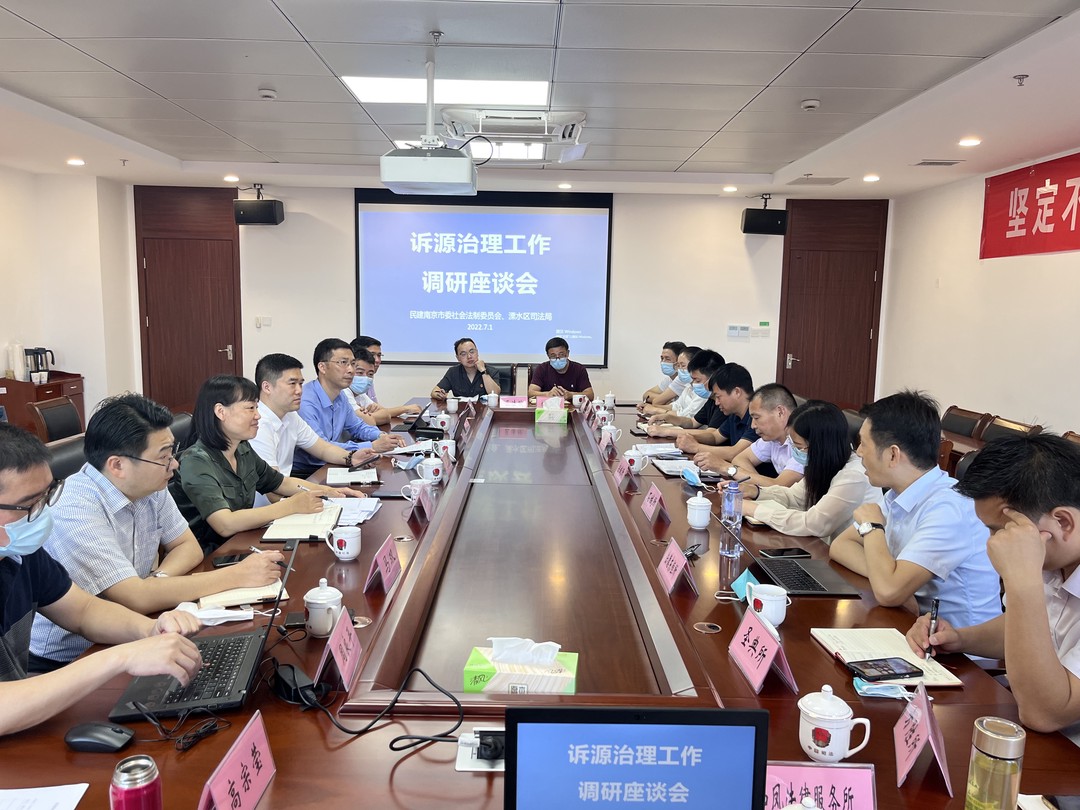 7月1日上午,民建南京市委社会法制委员会调研组赴委员所在单位溧水区司法局召开诉源治理工作调研座谈会。社法委主任严震、副主任吴宇、社法委委员、溧水区司法局副局长李阳、委员马双、王玉峰、沈勇胜、周良平参加了座谈。会议由李阳副局长主持。