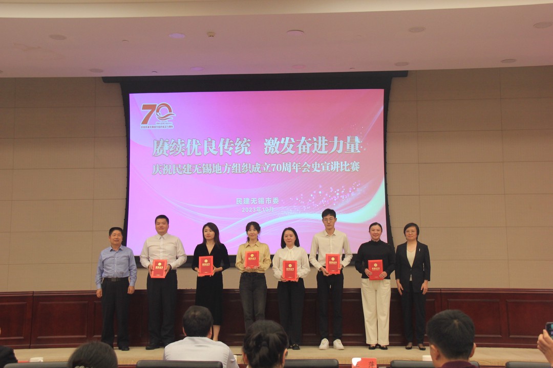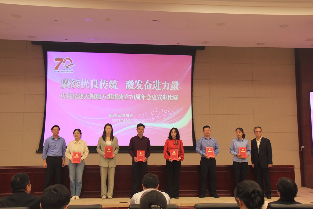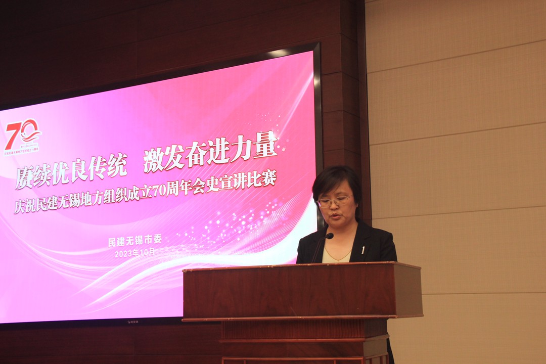为加强民建优良传统教育,深入推动“凝心铸魂强根基、团结奋进新征程”主题教育走深走实,10月11日,民建无锡市委会举办“赓续优良传统 激发奋进力量”——庆祝民建无锡地方组织成立70周年会史宣讲比赛。中共无锡市委统战部副部长李庆华,市政协一级调研员、民建无锡市委会同心讲师团团长许建樟,民建无锡市委会专职副主委王萍,市社会主义学院副院长李天鹏出席活动。