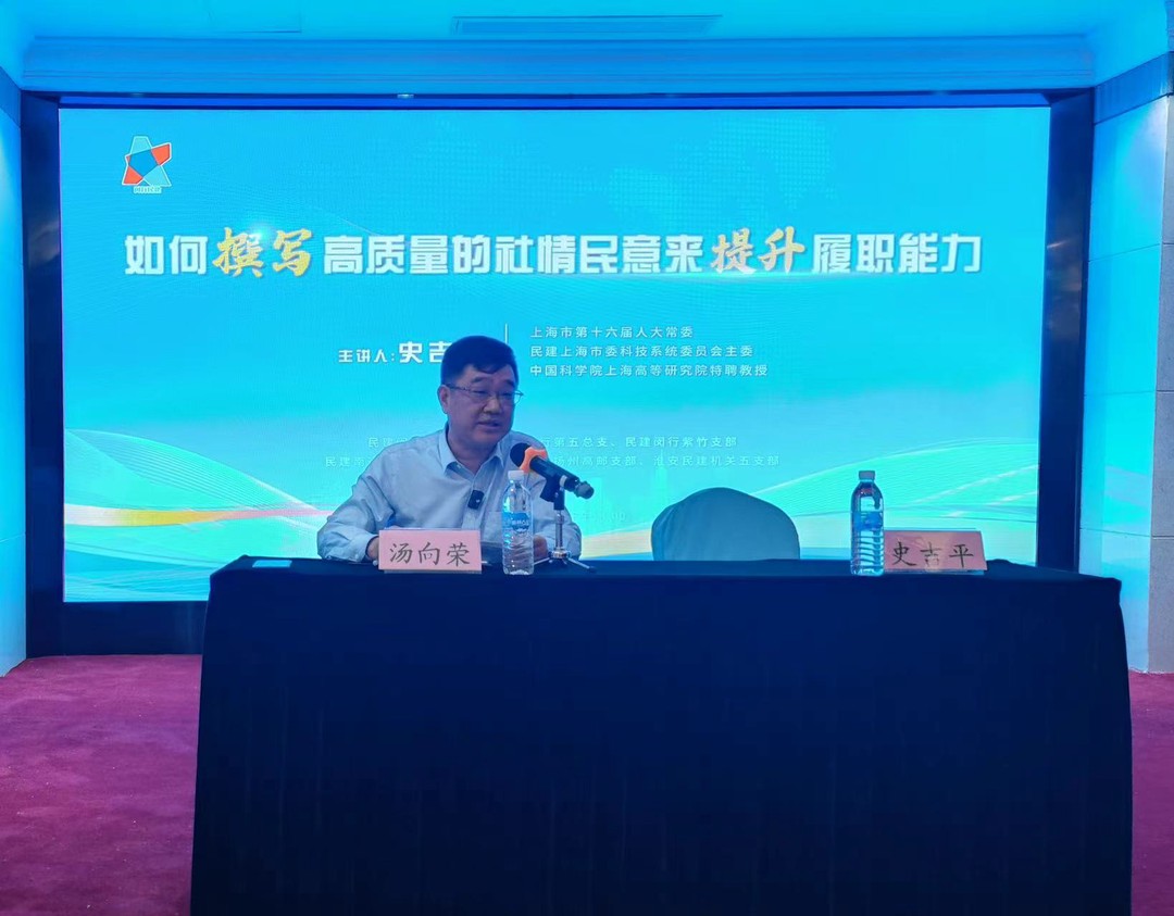活动由民建闵行区委第五总支主委汤向荣主持。活动特邀上海市第十六届人大常委、民建上海市委科技系统工委主委史吉平教授作题为“如何撰写高质量社情民意来提升履职能力”的辅导讲座。