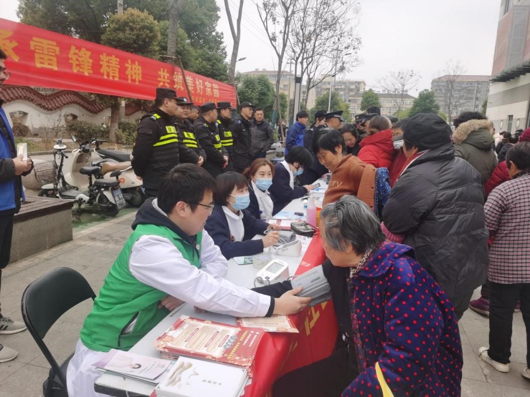 来自江宁区三支部的会员们精神抖擞,早早地布置好了场地。他们身着洁白的大褂,面带微笑,眼神中充满了关切与期待。他们的身影忙碌而有序,量血压、测血糖,每一个数据都被认真记录;听诊问症,每一个细微的症状都被仔细聆听。“学习雷锋好榜样,忠于革命忠于党。”那激昂的旋律在人们的心头回荡,如同一股无形的力量,鼓舞着每一位参与者的心灵。