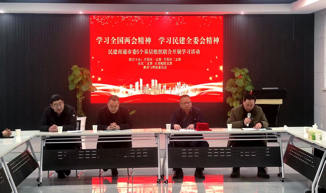 3月15日,民建开发区一支部与开发区二支部、江苏航运学院支部、市直二支部、教育与理论专委会在会员企业江苏鹿得医疗公司联合开展主题学习活动,共同学习全国“两会”精神,学习民建南通市委会全委(扩大)会议精神,五个基层组织共35名会员参加活动。