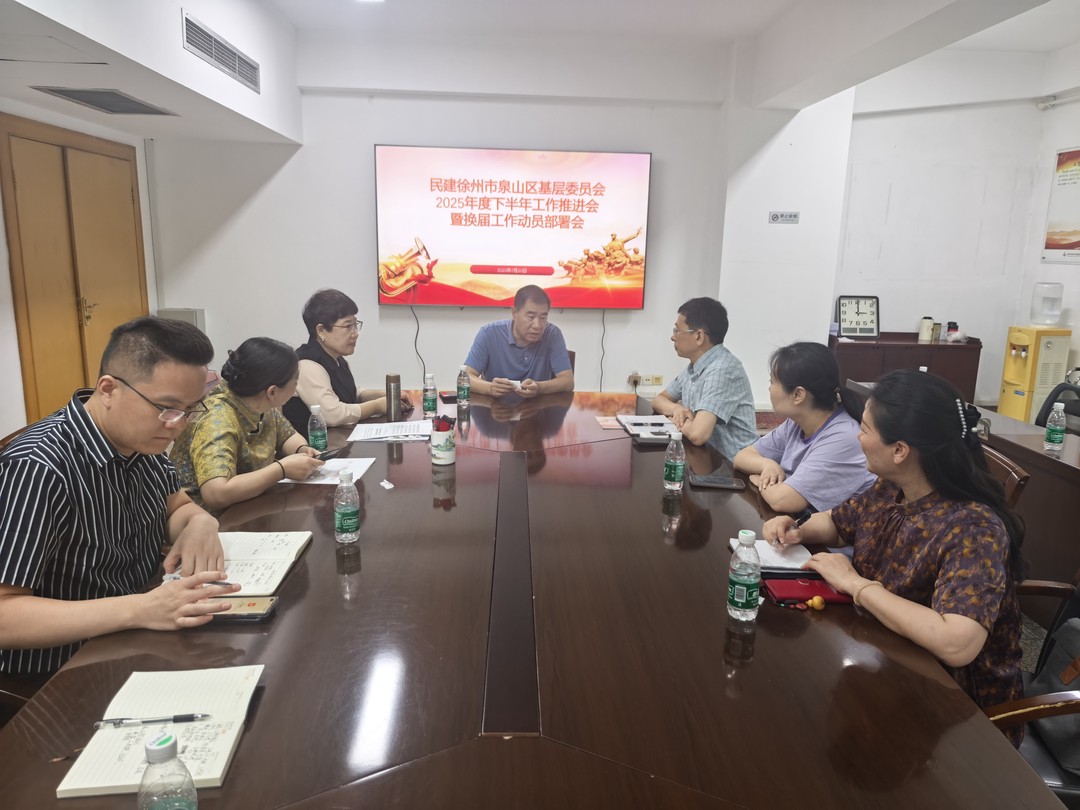 7月20日上午,民建徐州市委会泉山区基层委员会在徐州市医保中心会议室召开2025年度下半年工作推进会暨换届工作动员部署会。民建徐州市委会副主委戴道路出席会议,会议由泉山区基层委主委晏飞主持,基层委所属各支部主委参加会议。