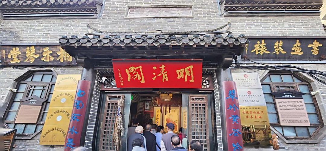 河下古镇作为淮安历史文化的重要印记,承载着千年漕运记忆与人文底蕴。活动当天,老会员们精神矍铄,沿着青石板路漫步古镇,首站走进会员企业“明清阁”。作为扎根古镇的本土企业,“明清阁”以传承淮扬传统工艺、展示明清时期淮安民俗文化为特色,负责人张光荣向老会员们详细介绍了店内收藏、非遗文化背后的故事,生动展现了淮安传统文化的传承与创新。老会员们不时驻足细看,与同行会员交流过往经历,言语间满是对家乡文化的自豪。