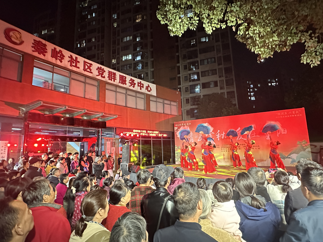 华灯初上,一场主题为“情暖金秋 爱在重阳”的重阳节文艺演出在秦岭社区文化广场上温情上演,为社区老年朋友们送去了节日的祝福与关怀。秦岭社区文艺团队和社区居民联袂登台,带来了歌曲、舞蹈、戏曲、乐器演奏等丰富多彩的节目。悠扬的歌声、优美的舞姿、精湛的技艺赢得了现场居民们的阵阵掌声和欢声笑语,大家在欢乐祥和的氛围中共度重阳佳节,感受到直属四支部、秦岭社区大家庭的温暖。