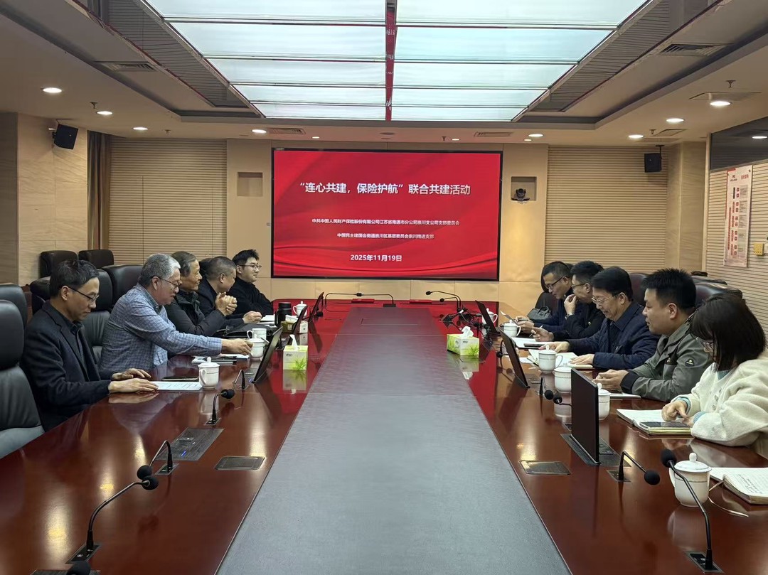 11月19日下午,民建南通市委会崇川精进支部(原崇川四支部)与中国共产党南通人保崇川党支部举办支部共建活动。活动以“连心共建,保险护航”为主题,双方围绕保险服务赋能企业发展、共建长效合作机制等内容展开深入交流。
