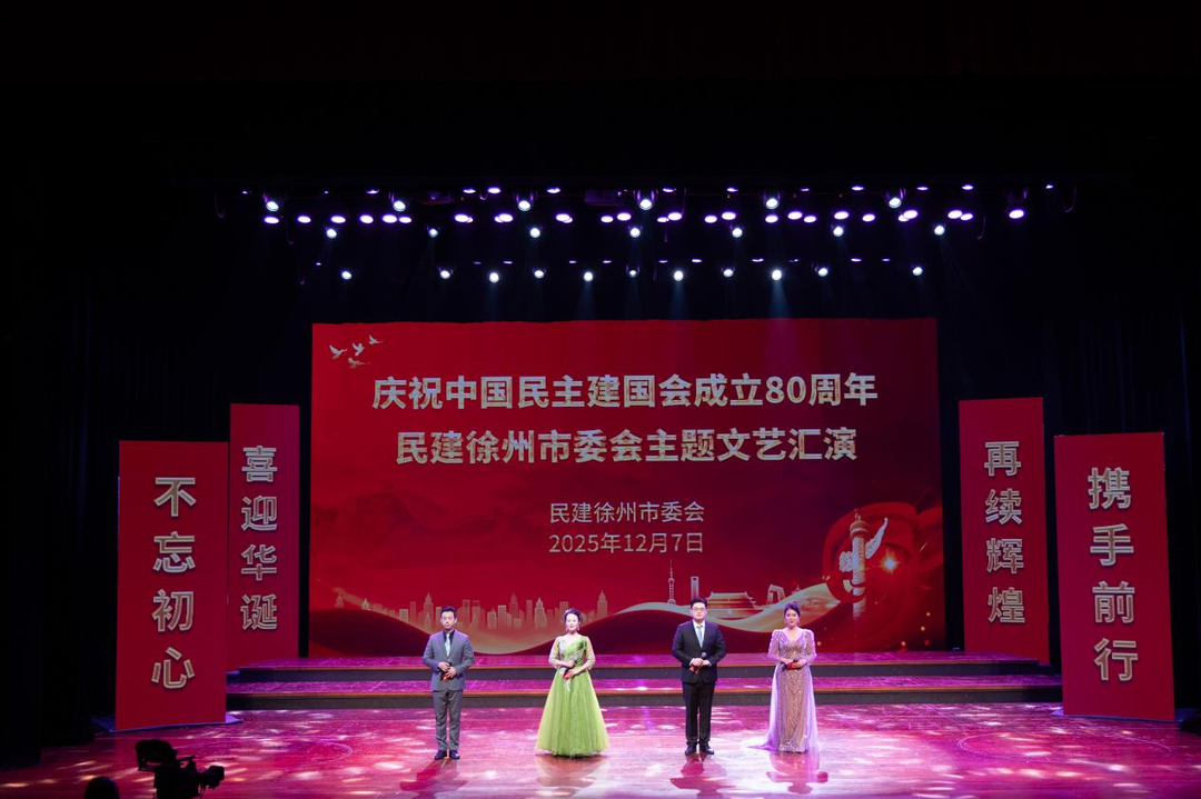 12月7日,民建徐州市委会庆祝中国民主建国会成立80周年文艺汇演在徐州音乐厅隆重举行。民建江苏省委会副主委、徐州市副市长、民建徐州市委会主委林斌,徐州市人大常委会原副主任、民建徐州市委会原主委李君超,民建徐州市委会副主委康建荣、孙统贤、戴道路以及各位老领导等出席会议,中共徐州市委统战部常务副部长于洪亮,徐州广播电视传媒集团党委书记、台长冯仰琦,徐州各相关高校党委统战部领导、各区党委统战部领导等应邀出席会议。徐州民建全体会员、会友和受邀代表700余人欢聚一堂,回顾多党合作光辉历程,共绘未来发展美好蓝图。