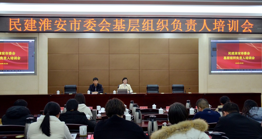 2026年1月10日下午,民建淮安市委会基层组织负责人培训会在市政府会议中心顺利举行。会议紧扣“提升基层组织负责人履职能力、规范工作流程”核心目标,设置统战信息辅导、基层组织工作实务讲解等重点环节,为全市民建基层组织负责人充电赋能。培训会由民建市委会秘书长赵国咏主持,各基层委员会、总支及支部负责人参加培训。
