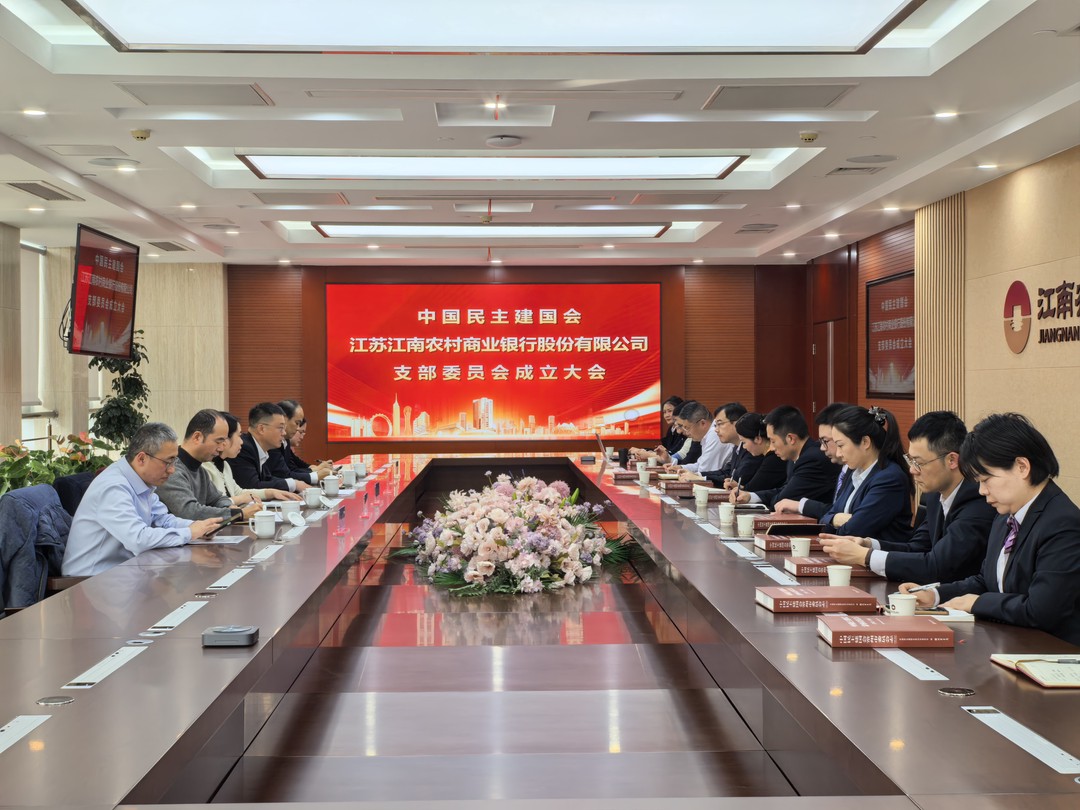 民建江南农村商业银行第一届支部委员会主委王俭作表态发言,他表示,将团结带领支部全体成员,恪尽职守,勤勉工作,坚定政治方向、筑牢思想根基,聚焦主责主业、服务发展大局,加强自身建设、激发组织活力,发挥桥梁作用、促进和谐发展,立足本职岗位、实现“双岗建业”,为推动银行事业发展、服务地方经济社会进步贡献民建人的智慧和力量。
