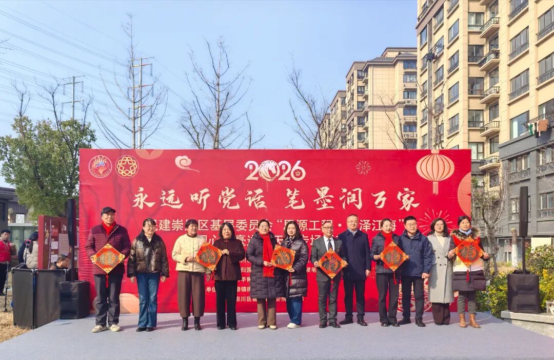 曹海戎、苏美云、严晓蓓、朱天宇、刘振亚、施维共同为活动点“福”开笔,并将定制福字赠予辖区居民代表。